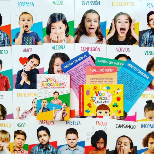 Cada emoción está representada por imágenes reales de niños de diferentes edades. Las cartas están laminadas para su mayor duración y tienen sus puntas redondeadas.