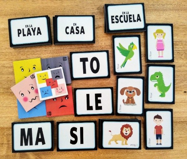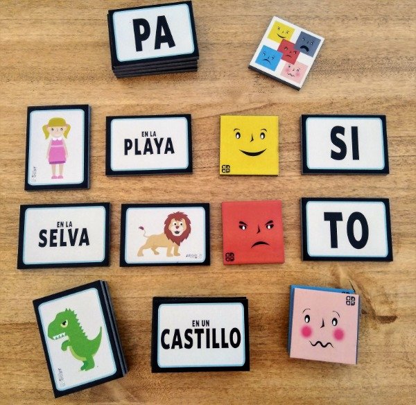 Contiene: 6 personas + 6 lugares + 6 silabas + 5 emociones + 1 comodín de emociones.