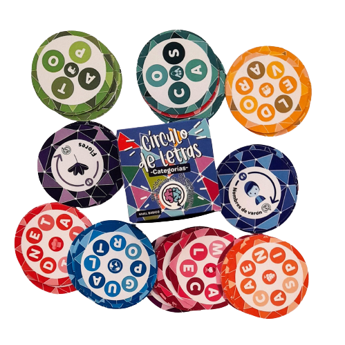 Es un juego de 100 tarjetas divididas en 10 categorías distintas: animales, frutas y verduras, nombres de mujer, nombres de varón, profesiones, flores, prendas de vestir, colores, países, hogar. El objetivo del mismo es adivinar qué palabra se forma con todas las letras de la tarjeta, sabiendo que la palabra pertenece a la categoría que se menciona en el reverso de la tarjeta.