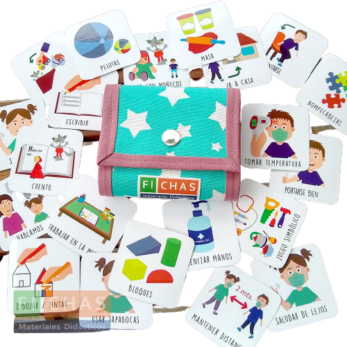 Portátil, ideal para transportar, llevar a distintos ambientes, armar la agenda de actividades de la vida diaria y anticipar el protocolo de prevención, contando con 35 pictos diferentes.