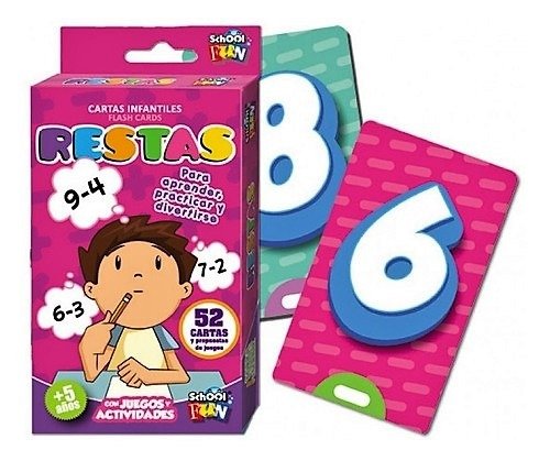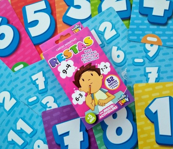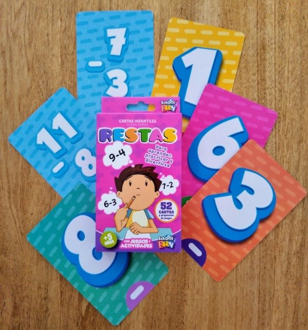 Juego de cartas para aprender, prácticar o reforzar el conocimiento de las operaciones de 🆁🅴🆂🆃🅰🆂 y divertirse.